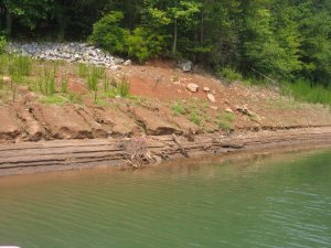 This is an old boat ramp. The dock is out so far you can’t see it in this picture. I remember swimming in this area and the water clearly covered the concrete pad near the tree line.