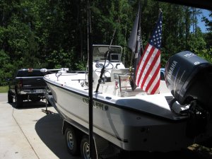 The event took place Tuesday May, 19th at Van Pugh Park. Here’s Billy’s rig in our driveway. It was a very windy day and he was ready with his boat, fishing equipment and his POW and US Flags.