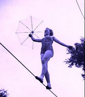 I’m not sure if this image really does a good job of portraying how I feel. I couldn’t find any pictures of the lady hanging from one hand from a wire, but that’s how I feel!
