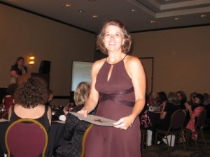 Kelli was in California and unable to attend the Maggies. She gave a wonderful acceptance speech from her cell phone, while our own GRW member, Walt, held the phone to the microphone. If I’d been using my head, I would have taken a picture of Walt holding the phone to the mic!