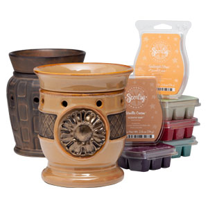 The Scentsy system is where you have a warmer that is a beautiful piece of pottery as you see in the photo to the right. You plug the warmer into a near by electric socket which lights a low-watt bulb. At the top of the warmer is where you put your wax. The scented wax heats and as it heats, puts out the most magnificent aroma. There are over 80 scents to choose from. The variety of scents is from clean scents to woodsy to masculine scents.